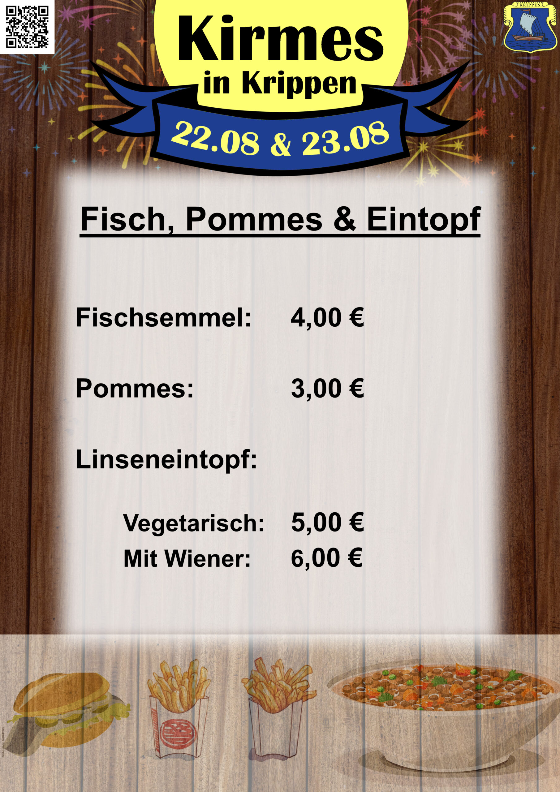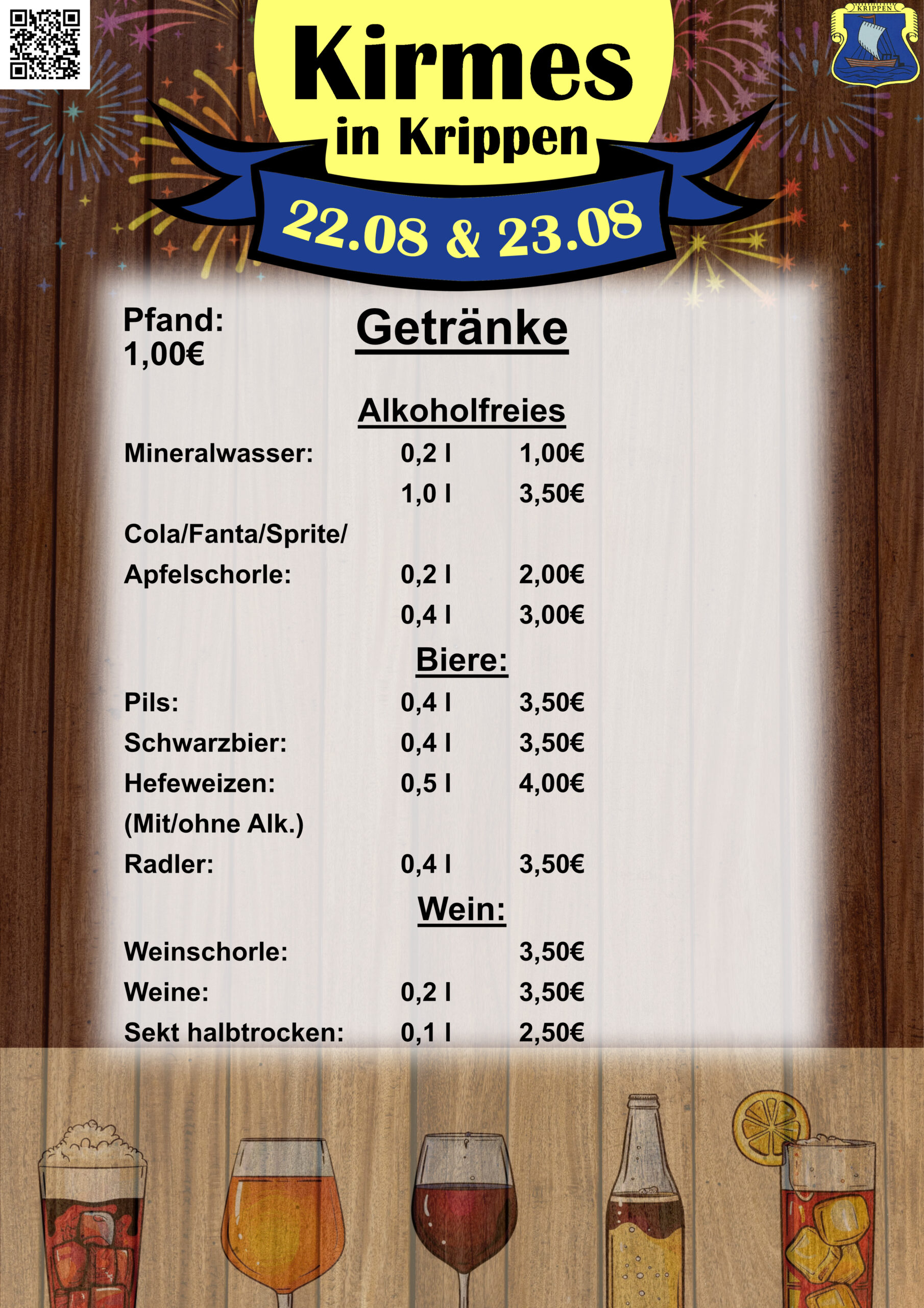 Jedes Jahr im Sommer veranstalten wir eine Kirmes bei uns in Krippen mit vielen tollen Attraktionen, Speisen, Getränken und Livemusik. Komm doch mal vorbei!